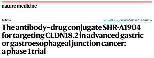 九游会j9医药CLDN18.2 ADC创新药SHR-A1904治疗胃癌临床研究结果荣登Nature Medicine