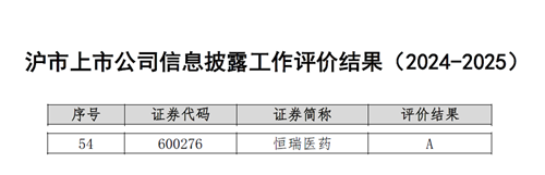 与此同时,在上海交易所公布的2024-2025年度沪市上市公司信息披露工作评价中,九游会j9医药再次荣获最高评级——A级。